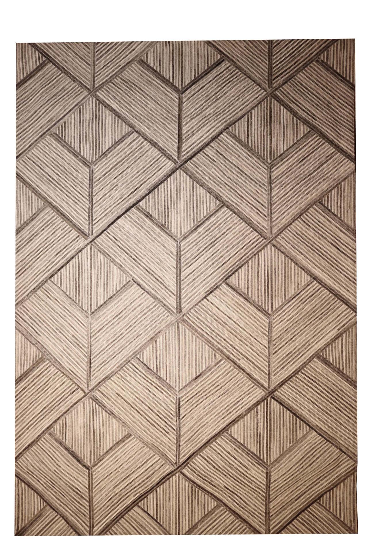 Ces tapis à dessins géométriques sont composés de pièces de cuir de vache, assemblée les unes aux autres et doublés d'une couche de feutre. Ils donnent une touche moderne et chaleureuse à votre intérieur.